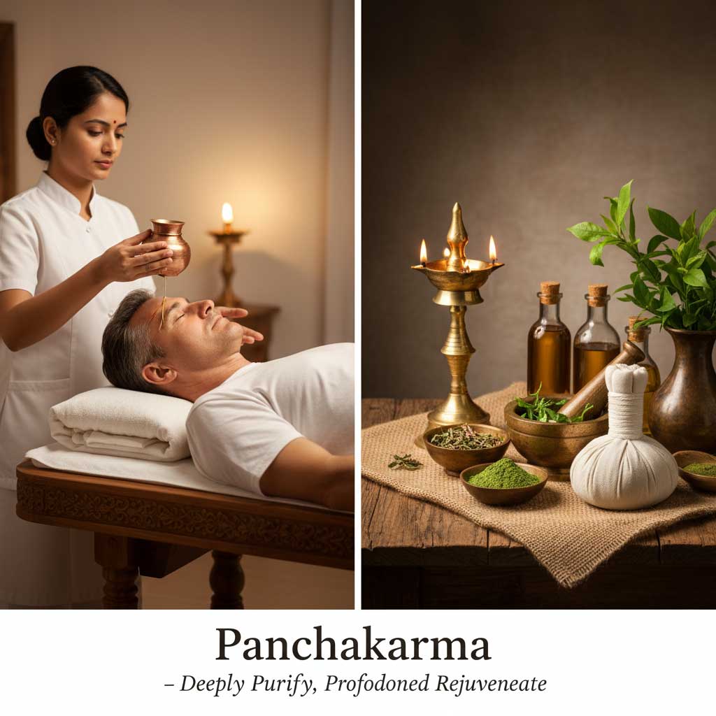 Panchakarma, meaning “five actions” in Sanskrit, is a powerful detoxification and rejuvenation therapy in Ayurveda, the ancient Indian system of medicine. Designed to cleanse the body of toxins (ama), balance the doshas (body energies: Vata, Pitta, and Kapha), and restore vitality, Panchakarma is often considered Ayurveda’s cornerstone for holistic healing and preventive health. These five therapeutic procedures – Vamana, Virechana, Basti, Nasya, and Raktamokshana – work in harmony to cleanse, rejuvenate, and strengthen the body, making it more resilient against disease.