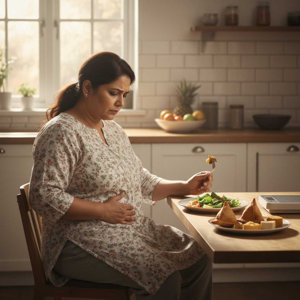 In Ayurveda, obesity is referred to as Sthoulya and is linked primarily to an excess of Kapha dosha—the energy associated with stability, moisture, and earth elements. When Kapha becomes excessive due to poor dietary habits, sedentary lifestyle, and emotional factors, it leads to weight gain, sluggish metabolism, and fat accumulation. Furthermore, poor digestion contributes to ama buildup, which slows down metabolism and contributes to further weight gain.